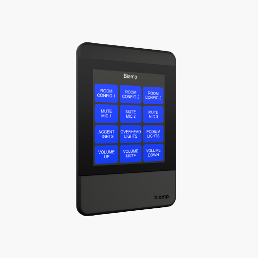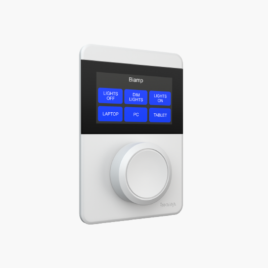 Biamp’s Apprimo TEC-X 1000 White offers effortless control and clean aesthetics for professional AV environments. With a responsive capacitive touch display, rotary encoder, and customizable interface, it provides flexible operation for Tesira-based systems. The LED light bar delivers clear visual cues, while PoE simplifies installation. Built to global standards and backed by a 5-year warranty, it ensures reliable, adaptable control for today’s collaborative spaces.