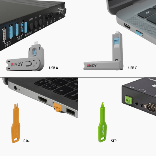 Lindy’s Port Blocker Series provides a simple yet powerful way to secure unused or vulnerable ports on IT and AV equipment. Available for RJ45, USB-A, USB-C, SFP, and SD card interfaces, these blockers prevent unauthorized access, data theft, and tampering - offering physical security where digital protection alone isn’t enough.